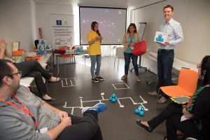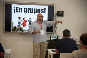 Además los asistentes pudieron asistir a uno de los 14 talleres impartidos por Javier Bahón (Tú salvavidas está entre las orejas, no bajo el asiento), Carlos Morales (ABP y STEM en el aula de matemáticas), Félix Lozano e Isabel Ávila (Design thinking para educadores emprendedores e innovadores), Mar Romera (Prácticas de vuelo emocional), Juan Francisco Hernández (Con flipped volarás), Fernando Trujillo (Gamificación y juego para el aprendizaje: recursos y diseños), Helen Grain (Mindfulness – plantando semillas), Yaiza González y Sara Santiago (La aventura de aprender comienza en mi aula de Infantil), Andy de Santis (El valor de las cosas), Leticia Bolumar (Aprender con el iPad), David Slotemaker (Robótica educativa con Dash and Dot), Miguel Luengo y Mónica Cantón de celis (Diseñando futuros), Amanda López y Viviana Figueroa (Aerolíneas cooperativas con escala en evaluación) y Viridiana Barban (Pensar y crear para construir futuros).