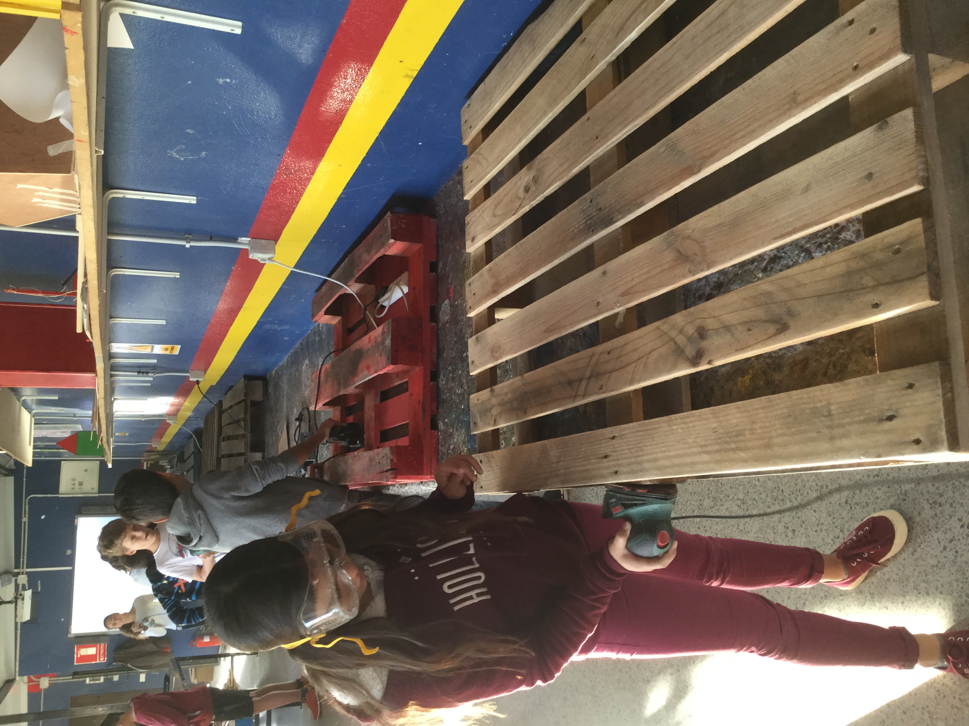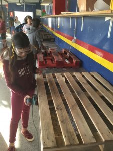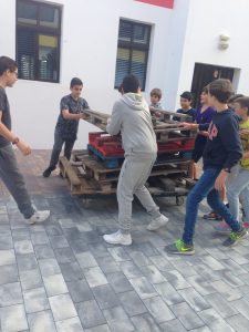Un ejemplo que realizamos hace poco tiempo en mi centro fue la rehabilitación de una zona exterior para poder ser usado por los niños. Fue su propia idea y decidieron restaurar y montar unos cuantos palets que se encontraban para ser recogidos por el servicio de limpieza. Primero pensaron y diseñaron que podrían realizar para después crear jardines verticales y sillones y pintar un mural que hizo el espacio habitable.